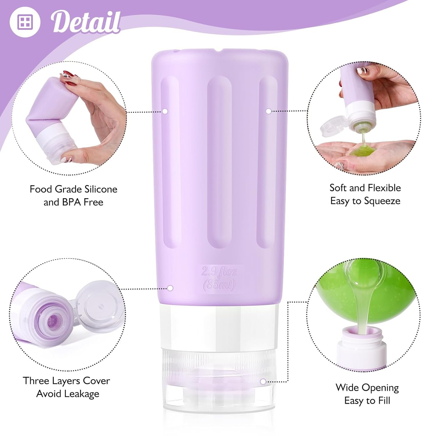 This travel bottle set is designed for our travels, triple leak-proof design prevents the bottle from leaking or spilling liquids, protects our luggage and bags from getting dirty and stained.