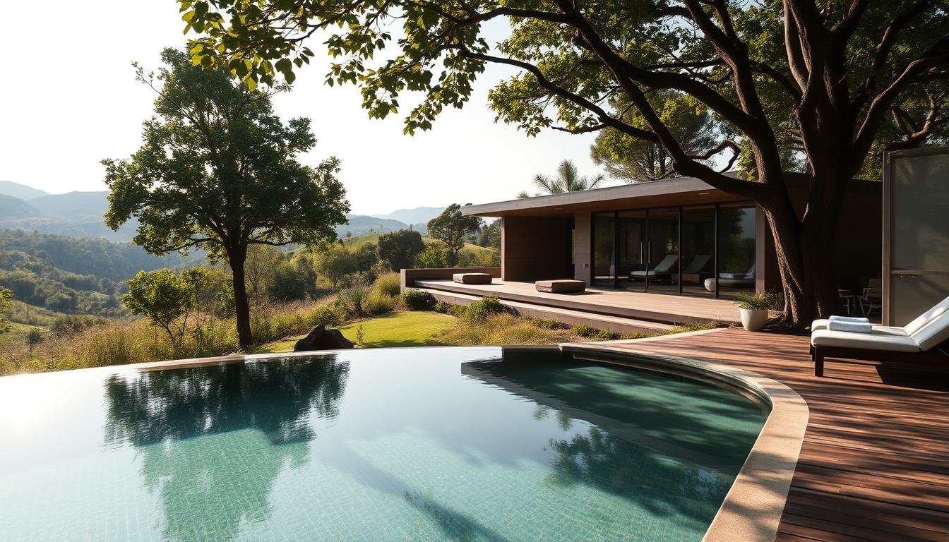 Wellness retreats are often in vast, natural spots. They might be in mountains, forests, or near the sea. This lets guests escape city life and connect with nature. The places to stay vary, from simple to fancy, based on the retreat’s style and who it’s for.